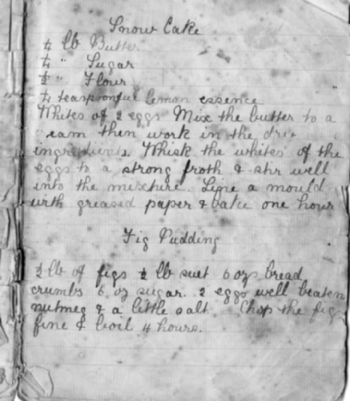 These two recipes seem to have come from Mrs Crookes and aren't the recipes which were passed on by Gran